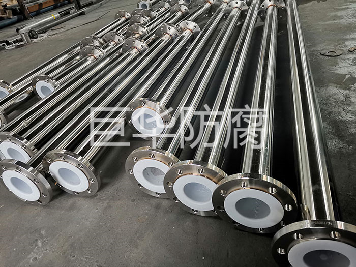 襯四氟乙烯襯裏防腐管道經過多年來的實際使用,直接影響其使用壽命和性能穩定的因素是溫度,壓力,介質等,優良的材料和先進的製造工藝方法是聚四氟乙烯襯裏產品的質量保證.鋼襯四氟直管俗稱鬆襯管。
